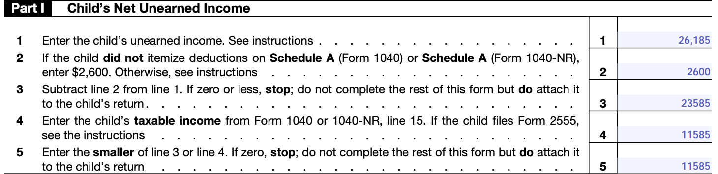 1. The child had more than $2,600 of unearned income.
